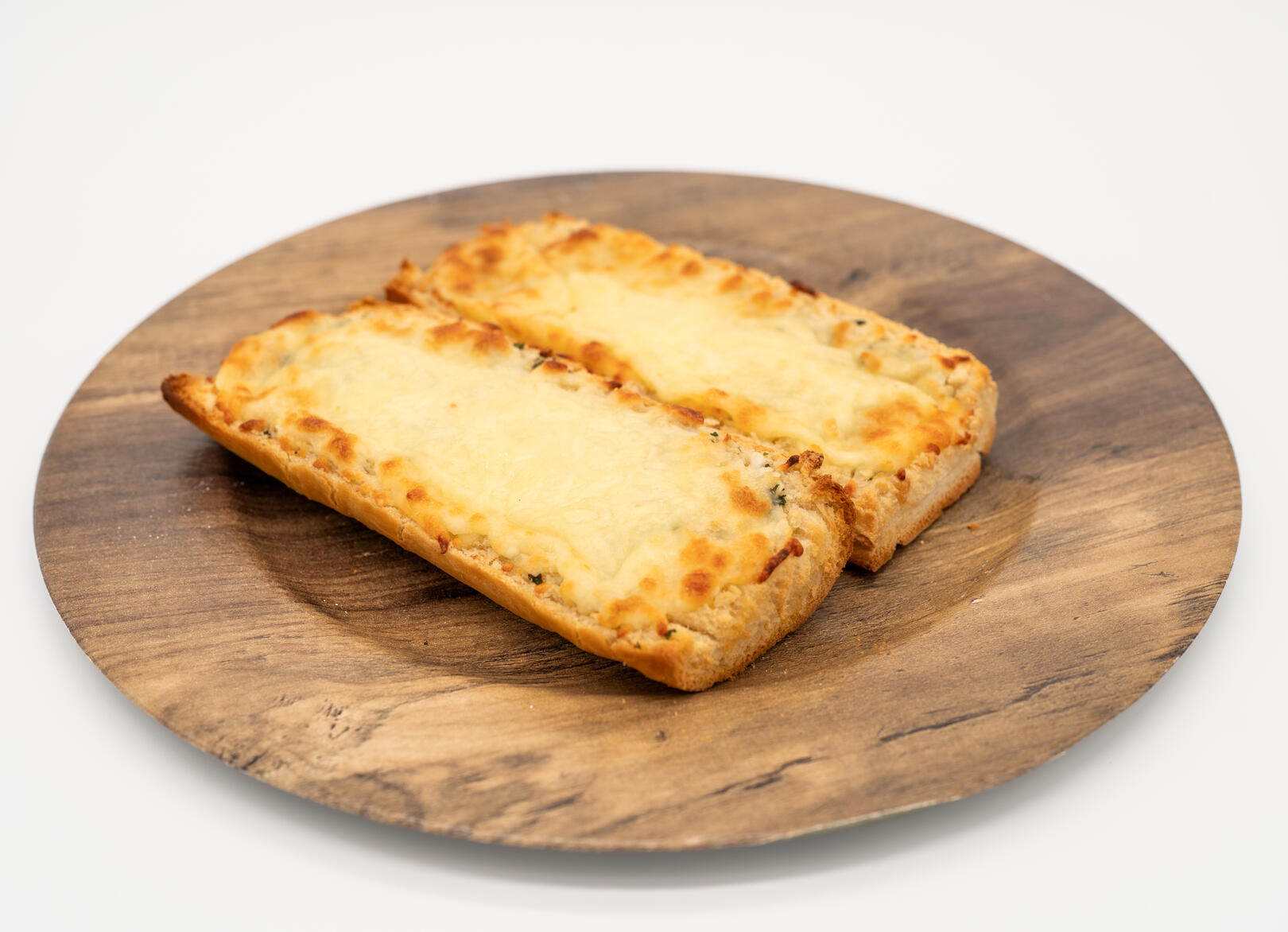 Garlic butter, basil, and gooey mozzarella on toasted bread