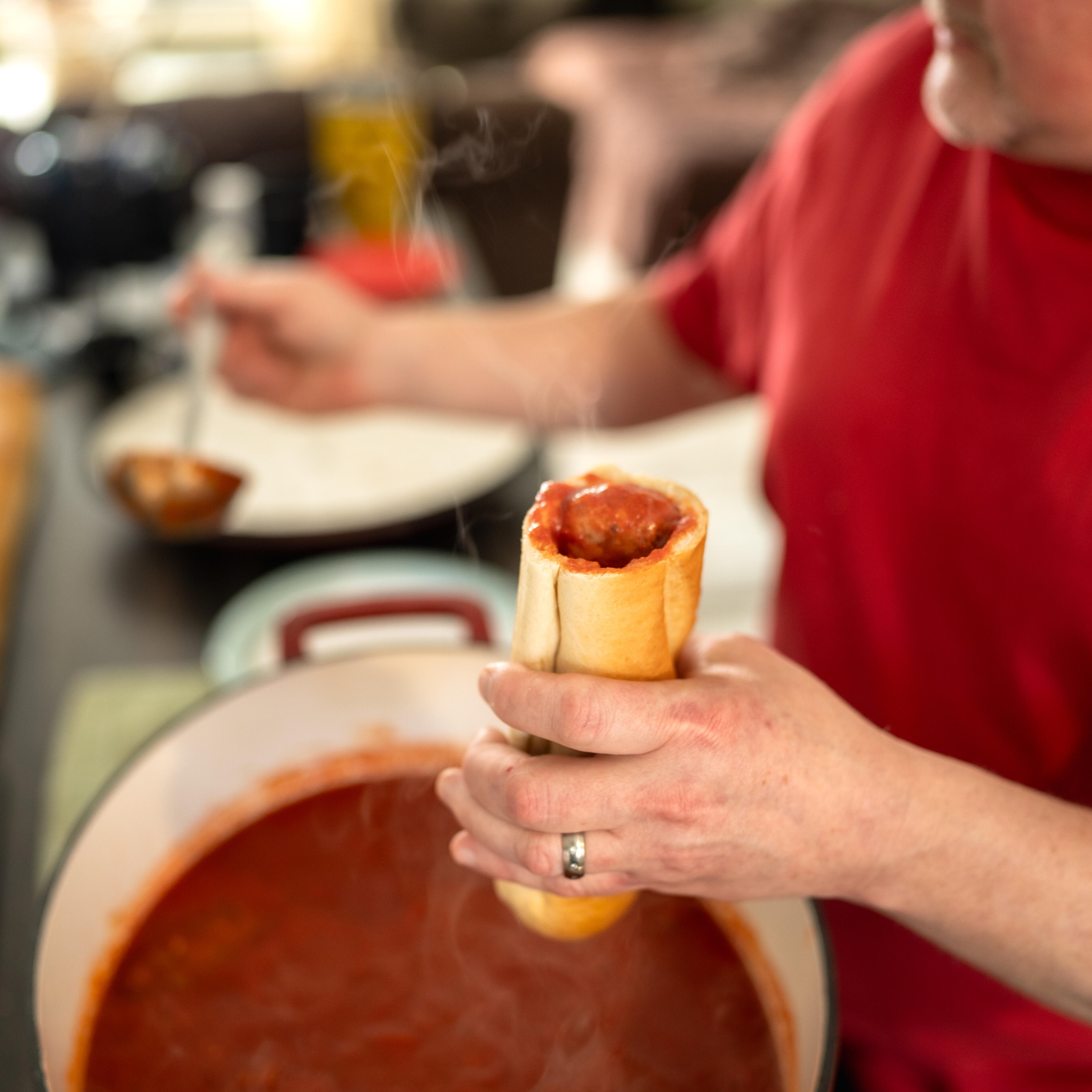 House-style meatballs, marinara, melted cheese on a toasted roll