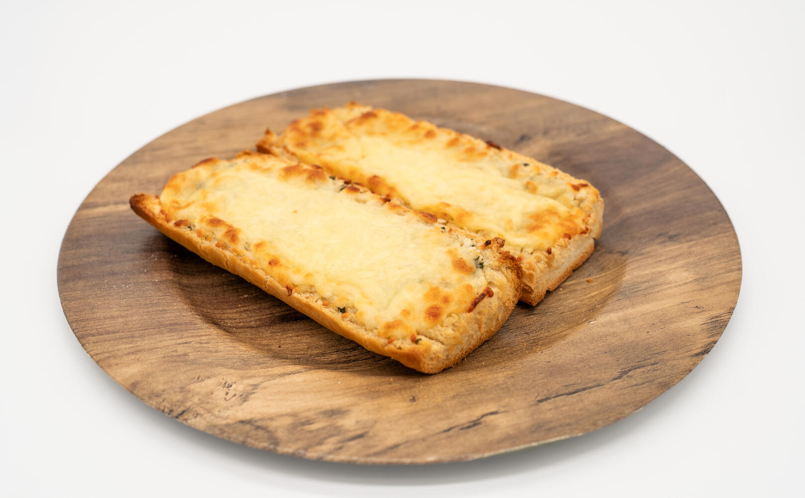 Garlic butter, basil, and gooey mozzarella on toasted bread